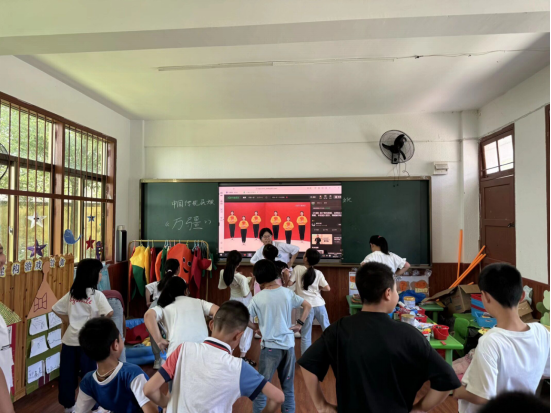 实践队开设美术、音乐、舞蹈、朗诵等多样化美育课程,通过黏土创作、歌伴舞、儿童律动等互动教学,激发学生艺术潜能。策划文艺汇演和手工作品展,集中展示美育成果,获得村民和师生一致好评。师范生也在实践中深化对“以美育人”的理解,进一步坚定教育报国信念。