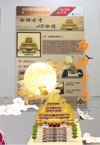 我院参展作品紧扣“科技赋能文创”这一核心主题,深度融合了闽东地域文化与数字技术。具体而言,《畲族智能 AR 精灵》以畲族传统神话形象为原型,通过AR技术实现了虚拟精灵与现实场景的沉浸式互动;《西禅古寺 AR 秘境》则数字化还原了古寺的建筑细节,观众扫码即可查阅其历史沿革与文化故事。这两件作品集中展现了我院在“文化+科技”融合方面的艺术教育实践成果。