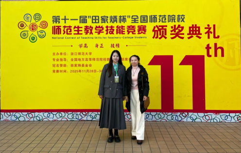 11月28日至30日,第十一届“田家炳杯”全国师范院校师范生教学技能竞赛决赛在浙江师范大学举行。我院选派2名选手分别参加初中学段体艺组(音乐)及小学教育(综合)两个组别的比赛,均荣获二等奖。